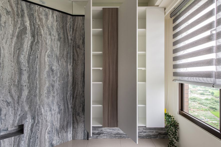 主要建材/ 建材/素材:金剛木/鐵件烤黑、E1級塑合板/白楓木、環保烤漆塗料、ICI環保全效乳膠漆、灰鏡、石紋石塑板。