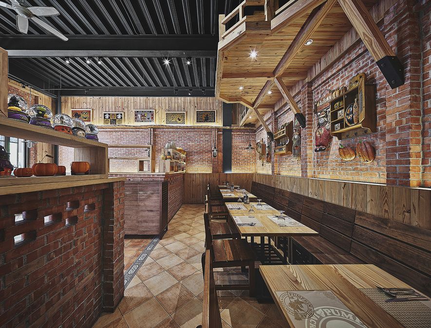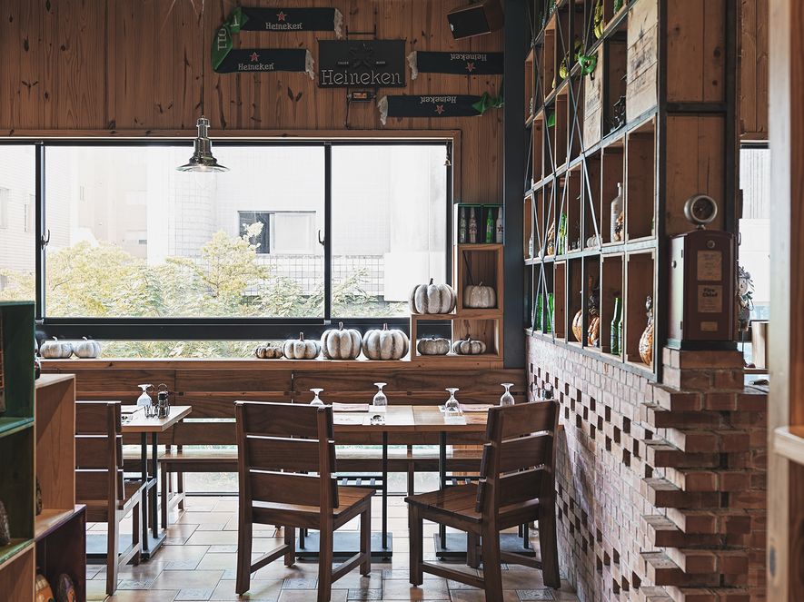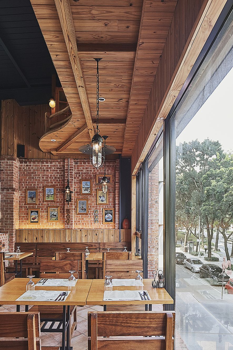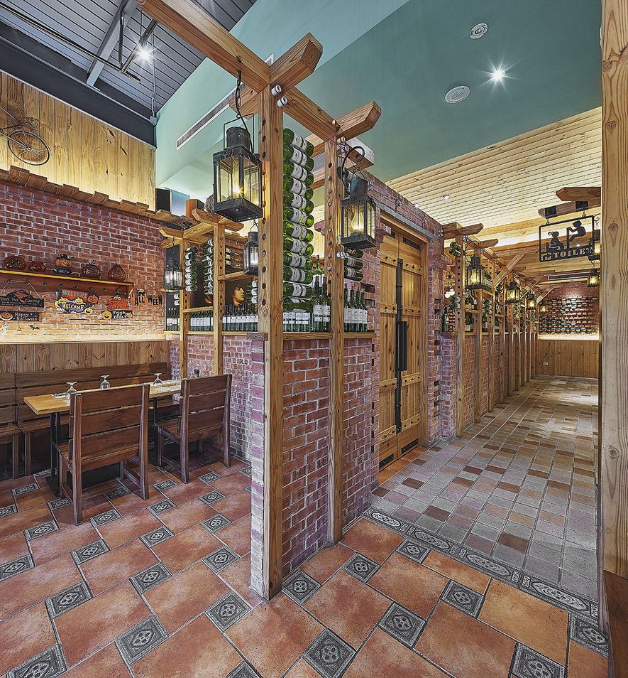 作為街邊的異國料理餐廳,首要條件即為建立品牌識別度,吸引來客目光;因此,我們利用手工薄切紅磚,以此堆砌、修飾外牆,拉升立面尺度,並透過不同砌磚工法,創造與鄰近建物的區隔與反差;與此同時補強植筋結構,在不破壞整體線條比例的條件下,於安全維繫及視覺呈現上取得良好的平衡。