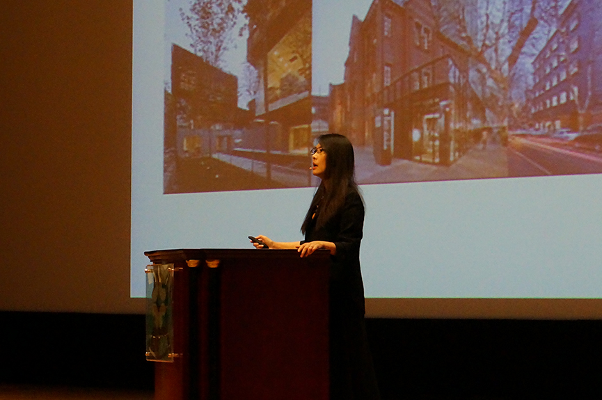 胡如珊出生於高雄,12歲時移民至美國,2004年與郭錫恩在上海成立如恩設計研究室,這是她第一次回到臺灣這塊土地演講,對於時間與空間的改變特別感觸。談到城市與空間設計美學,胡如珊認為城市的變遷是現代與傳統堆疊交替的過程,是歷史的對話造就了我們今日看見的空間樣貌,這讓設計成為一件很美的事。