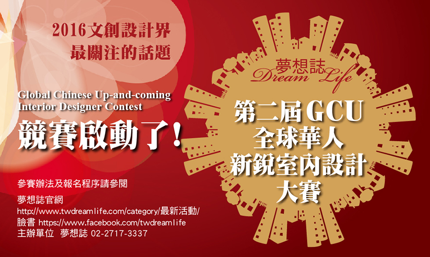 「Dream Life夢想誌」雜誌以打造夢想居家與創意美學為定位,為支持文化創意產業並鼓勵全球華人大專院校設計系學生及新銳設計師(社會新鮮人)勇於發揮創意,為產業界發掘優秀的未來設計人才,特舉辦全球華人新銳室內設計大賽(簡稱GCU),在去年佳評如潮的基礎之下,第二屆的GCU更是在眾人期待之下盛大展開。