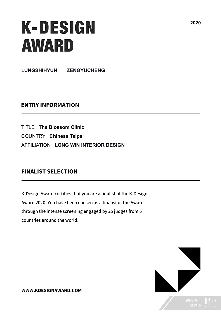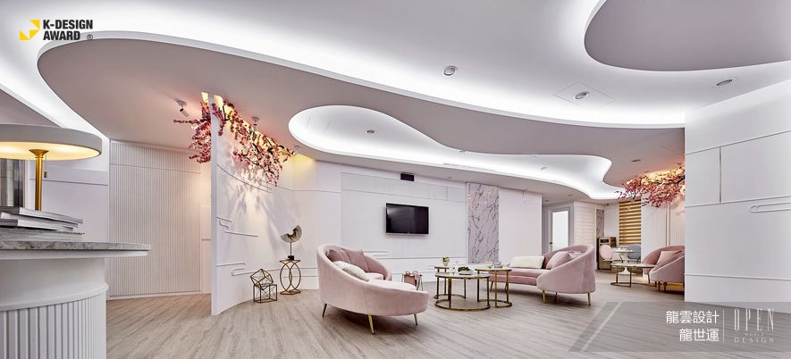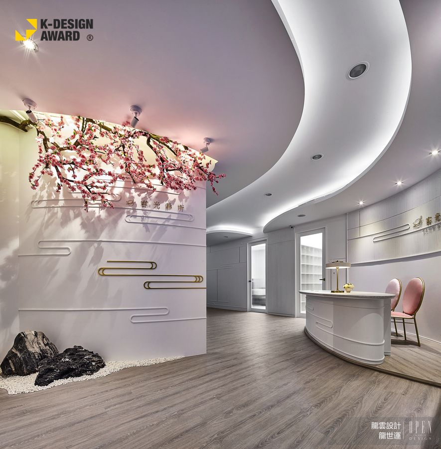 龍雲設計 龍世運 設計總監 此次將團隊核心「無框設計」發揮的淋淋盡致,並呈現於流淌雲彩的醫美診所作品《花想容》當中,不僅跳脫大眾的既定思維,也得到評審大力認可,入圍2020 K-DESIGN AWARD,為品牌再添榮耀!